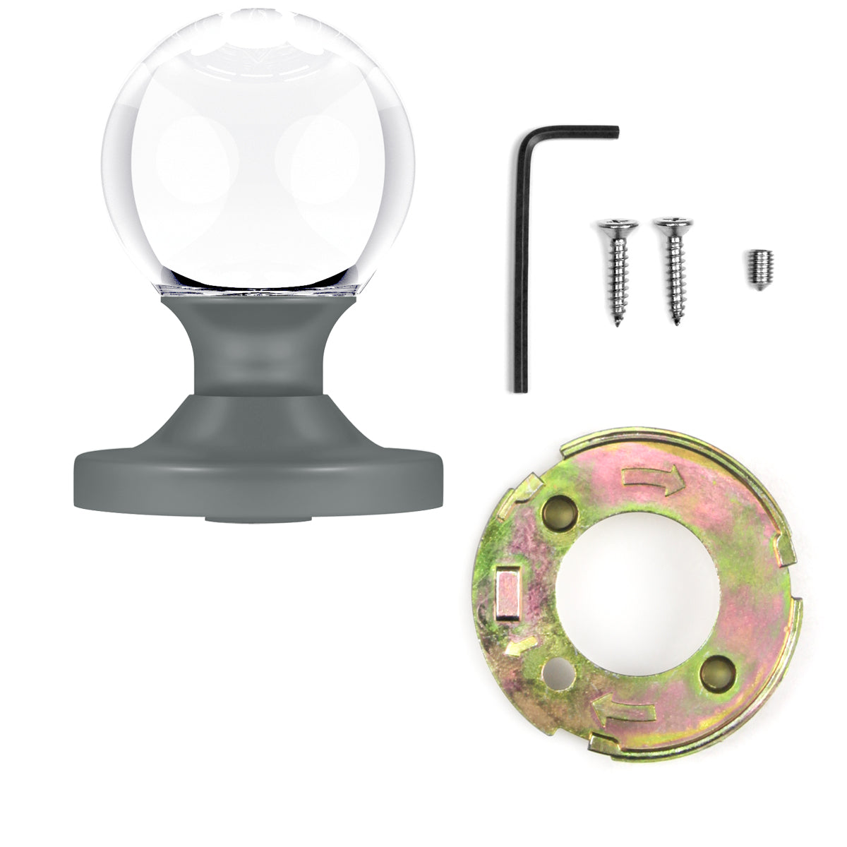 COMPLETE DOOR KNOB SET (*PRIVACY & PASSAGE) - Include 1 set (both sides) of door knobs, 1 latch, 1 strike plate and all screws and parts needed for installation. (*DUMMY) – Include 1 door knob, 1 set screw, 2 wood screws and 1 mounting plate.Instruction included.