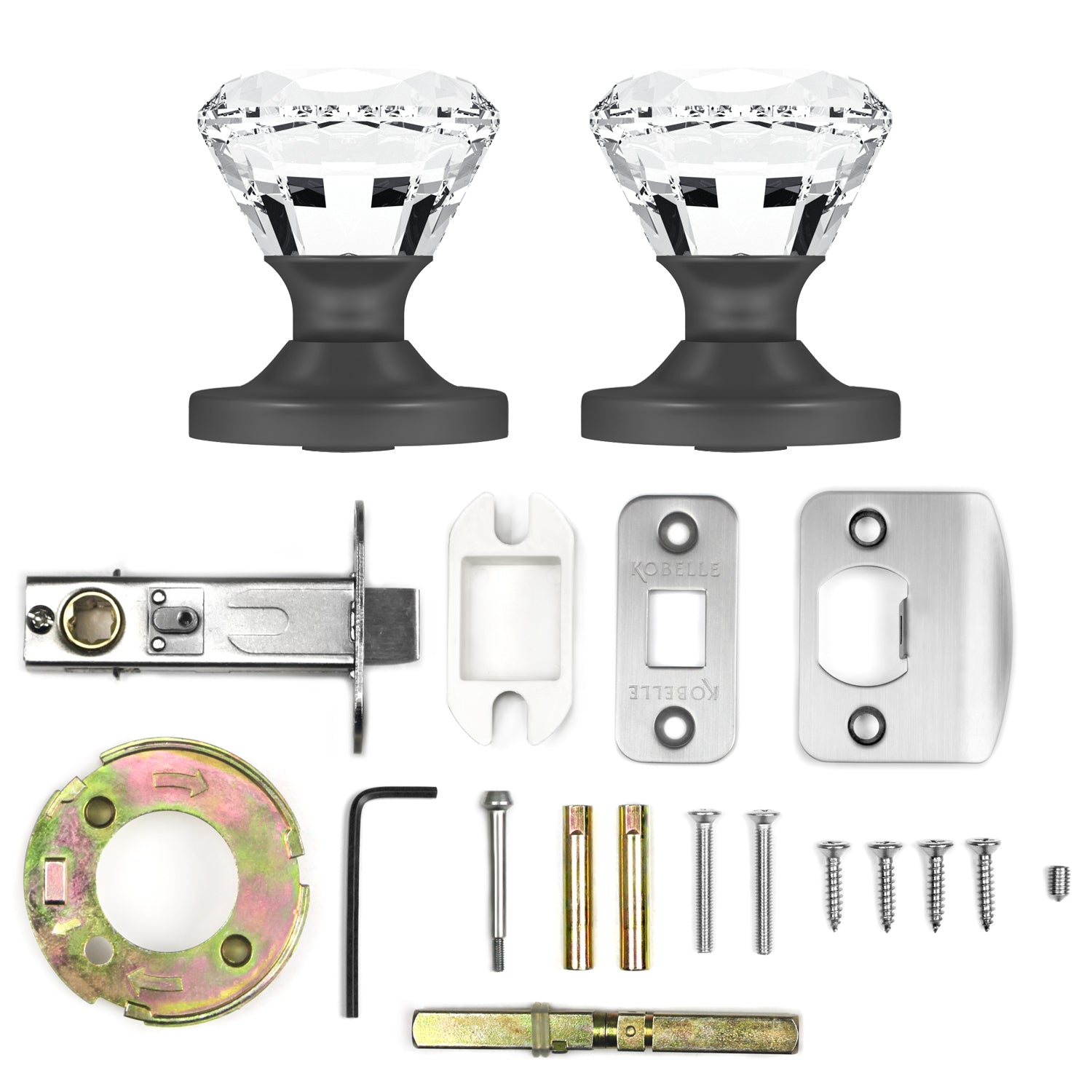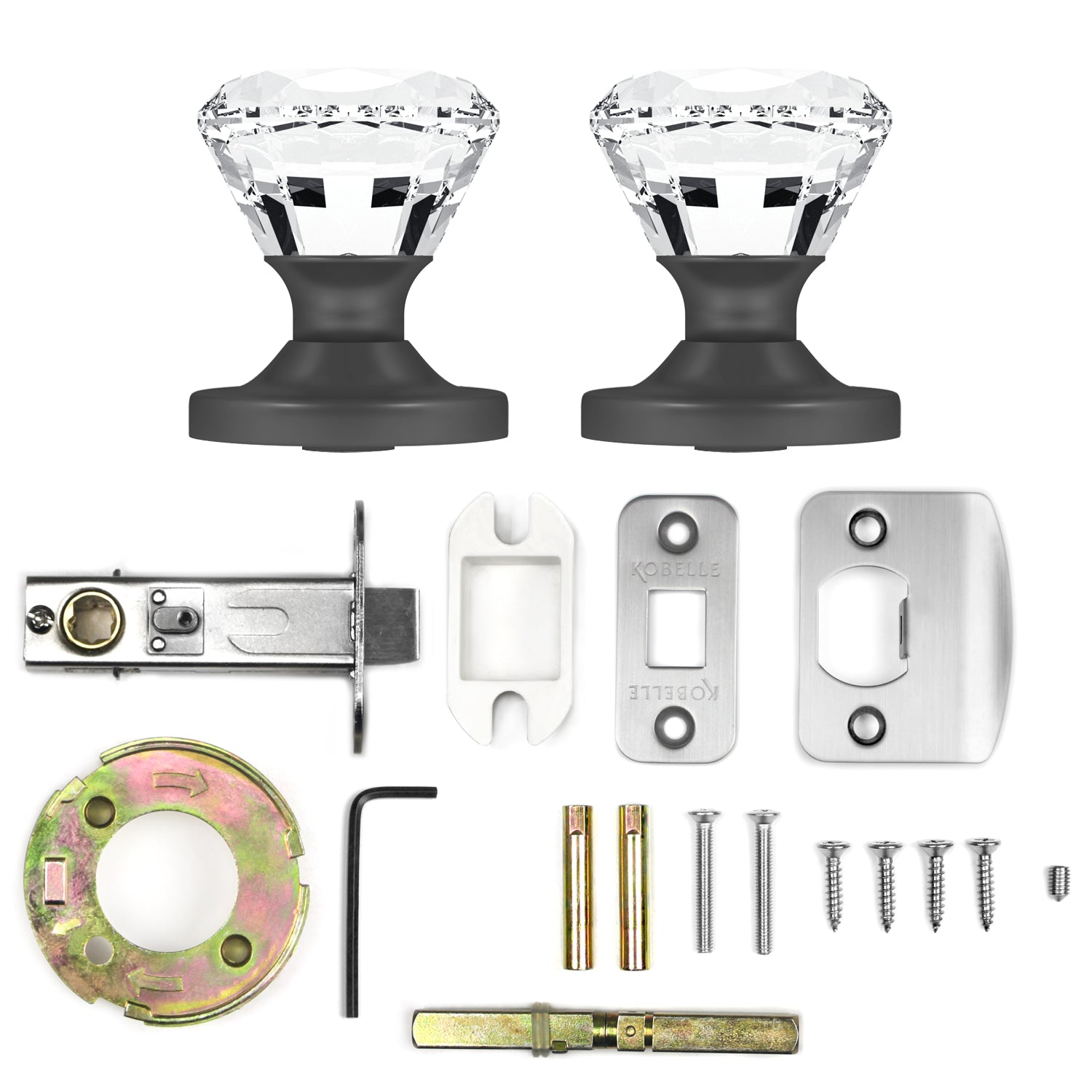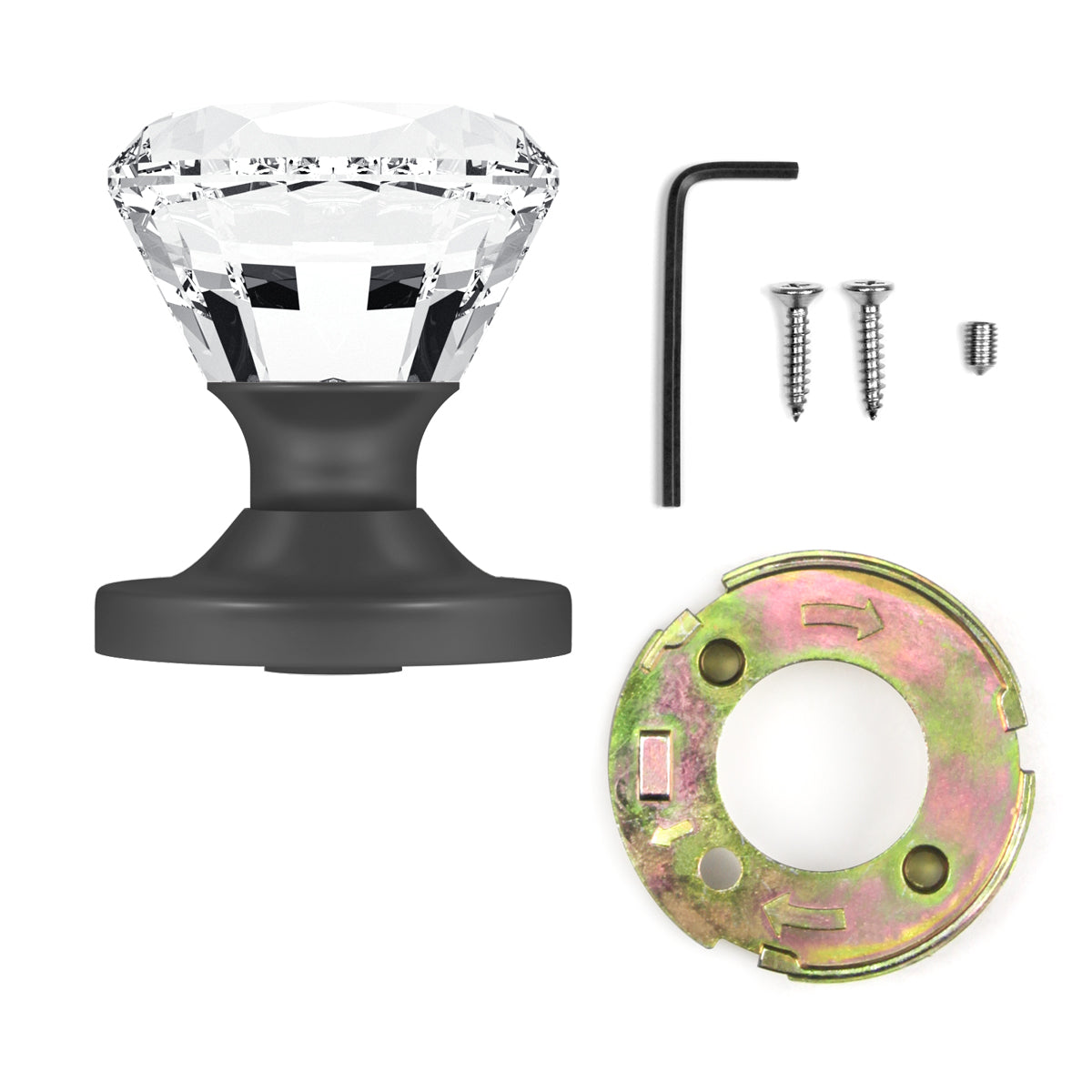 Diamond Round Brilliant Crystal Dark Grey Door Knobs