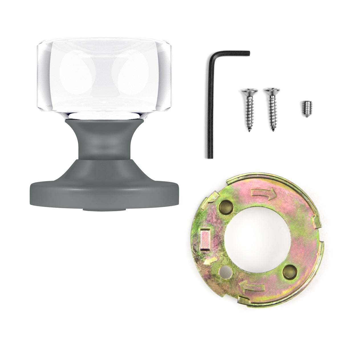 COMPLETE DOOR KNOB SET (*PRIVACY & PASSAGE) - Include 1 set (both sides) of door knobs, 1 latch, 1 strike plate and all screws and parts needed for installation. (*DUMMY) – Include 1 door knob, 1 set screw, 2 wood screws and 1 mounting plate. Instruction included.
